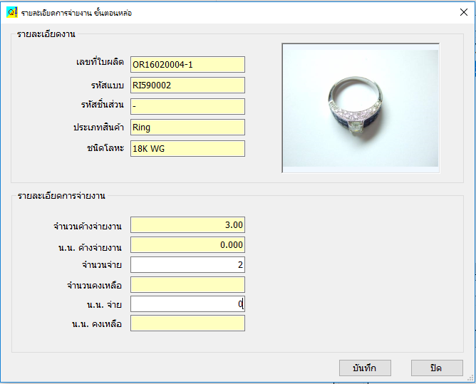 - รับ-จ่ายงานทุกขั้นตอนการผลิต รับ-จ่ายวัตถุดิบให้ช่าง และสามารถพิมพ์ใบรับ-จ่ายงาน
