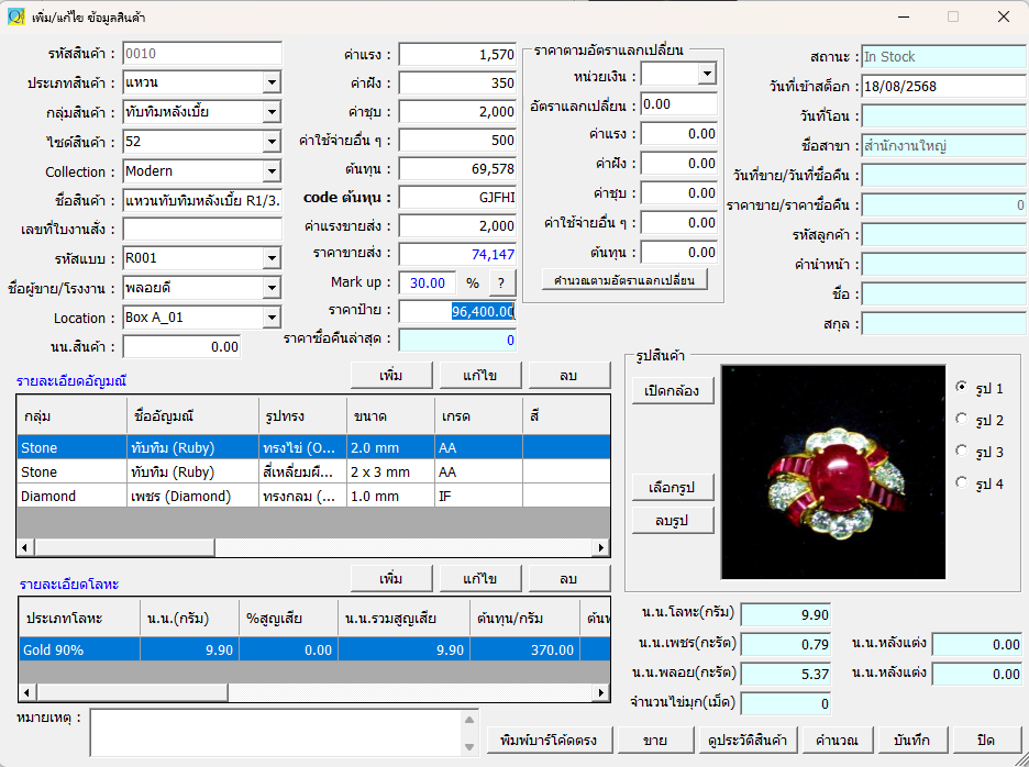 - ควบคุมสต็อก และตรวจนับสต็อกจิวเวลรี่,สต็อกอัญมณี