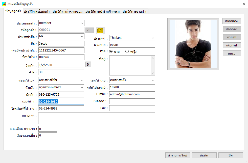 - แสดงประวัติการซื้อ-ขาย ข้อมูลงานสั่ง-งานซ่อม และประวัติการใช้สิทธิพิเศษของลูกค้า
